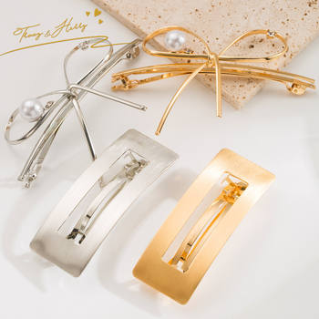 Vente en gros d'accessoires pour cheveux vintage minimalistes américains Tracy & Herry Pince à cheveux en métal Pince à cheveux dorée pour filles de marque